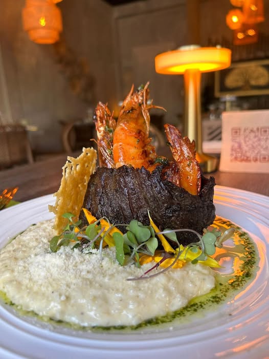 Déjate tentar por nuestro exquisito Mar y Tierra, donde la jugosidad de un corte premium se encuentra con la suculencia de los langostinos en una combinación perfecta. Elige tu carne favorita: Ribeye, Filet Mignon o Churrasco, y disfruta de una explosión de sabor en cada bocado.